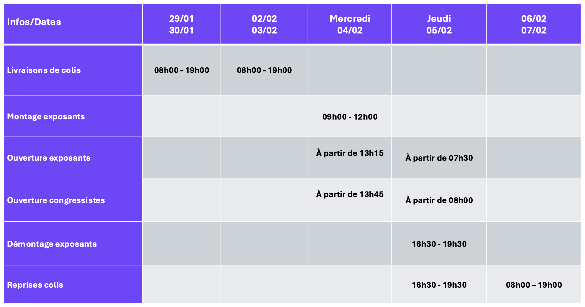 Une zone de stockage sera disponible pour les exposants pendant toute la durée de l'événement.